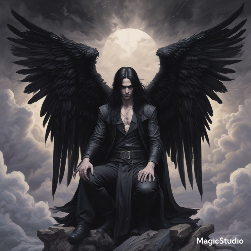 Appearance: 5'11. Slender build. Russet and Amber brown eyes. Long, dense, black hair. Pale complexion. Age 20 by appearance. True Age: Millenniums. Fallen Age: 707 Wears only black - Canvas Trench Coat, Tee-shirts, jeans, leather pants, leather jackets, bondage outfits, military style combat boots. Black fingernail polish. Black eye liner. He also possesses a Dark Angelican form known as an Acerbus Seraphim in which Glossy, black feathered wings with a 16 foot wing span tear from his shoulders. Black claws shoot from fingertips and incisors protract into saber canines, while his eyes blanch to glow a golden umber. Devil Form has black, dragon-like wings and horns.