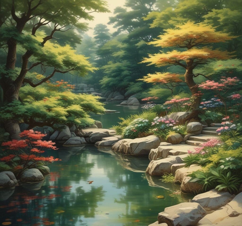 The shrine is thirty miles southeast of the Lake of Shadows. It is an elegantly built but ancient and weathered tower against a hillside surrounded by trees almost as tall as it is. Moss and lichen discolors the shrine's light grey stone in places and ferns and even small bushes spring up from crevices. The shrine is very tall and has many ledges and sheer faces alike. A stone bridge crossing a lively creek leads to the first floor's entrance. The first floor is just a large empty room with a round pool at the center. A ramp spirals up against the walls to another chamber 60 feet above the pool, where there is an antechamber. Within; statues stand in nooks against either wall with a wide aisle between them. The statues are of various demons, angels, and gods which are followers of chaos. The aisle ends at an atrium where a stone table stands between two stairways which lead outside to a single wide stairway at the top of the hillside the tower is against. There is a tranquil garden atrium on the roof of the shrine with pools of pure healing water and fruit trees on the 80 feet above the second floor temple which can only be reached by flight or by climbing the tower. Only one route reaches the garden, all other climbs result in dead ends. Other chambers and secret gardens in the shrine are hidden and can only be accessed by words of power or hidden doors. There are also secret chambers in the basement of the shrine.