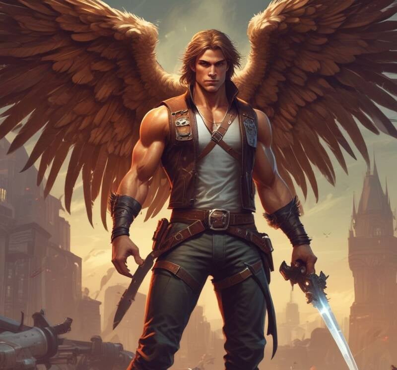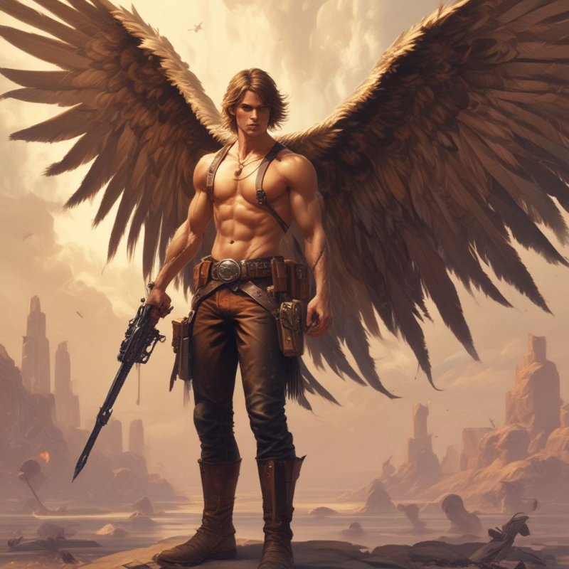 ☆ Description: A regular looking guy with light brown hair, hazel eyes, lean sinewy build, a few tattoos, mostly lore. He can easily blend in until he unfurls his brown wings.