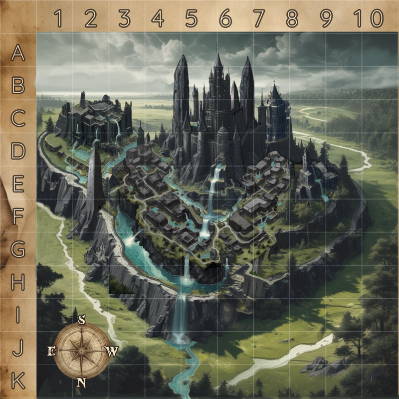 - The towering North Spires are huge towers of obsidian in crystal form and house the Blackstone Knights (west, A'C-5), their squires and servants, and the Blackstone Cabal battlemages (east, A'C-6,7).
